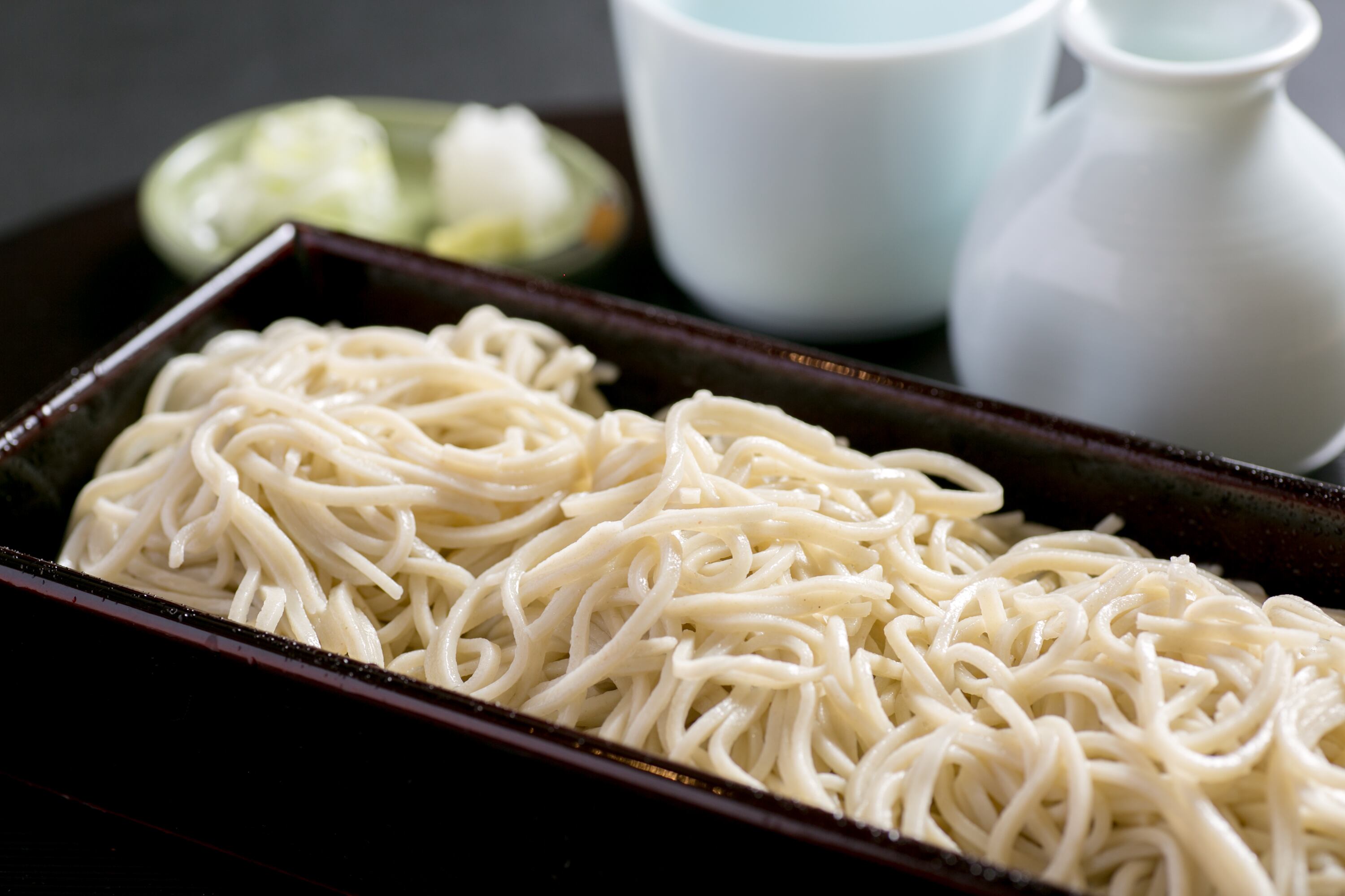 当店のそばは、超低回転の石臼で挽いた、挽きぐるみ(全粒粉)なのに更科の様な喉ごしの良い食感のそば粉と、つなぎ(小麦粉)を二割使用した二八そばになります。
